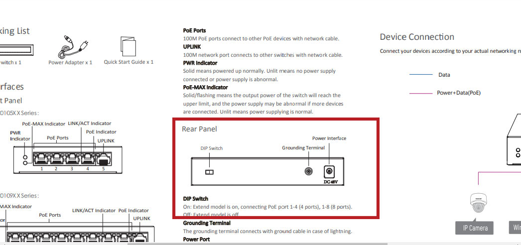 Si su escenario es el desarrollo de una red de datos y utiliza este switch POE Hikvision, recomendamos no activar DIP. Esto afecta considerablemente la transferencia de datos en la red.
