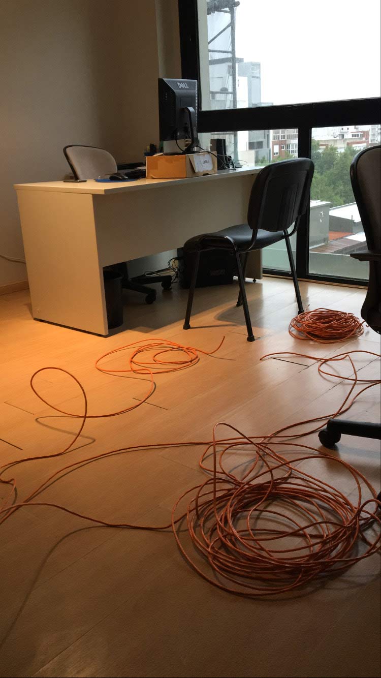 Se quitó cableado antiguo cat5 y se implemento cableado de mejor calidad Cat6. Toda la tecnología de red de la anterior oficina fue establecida en las nuevas instalaciones, otorgando red de datos a cada computadora de escritorio y red inalámbrica wi-fi en sala de reuniones, y toda la oficina en general. Se instalaron cajas de fichas hembras RJ45 en sectores estratégicos para el uso de Notebooks por cable de RED.